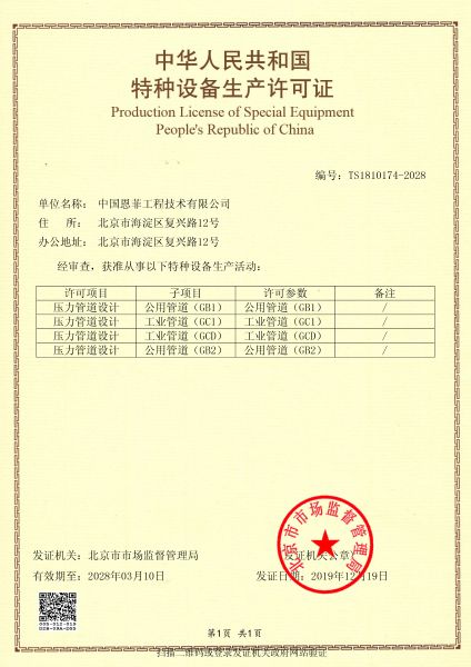 • 中華人民共和國特種設(shè)備生產(chǎn)許可證(壓力管道)