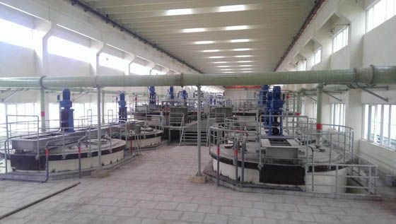目前,富氧常壓直接浸出技術處于國際鉛鋅冶煉行業領先水平。中國恩菲引進并消化吸收了芬蘭OUTOTEC公司硫化鋅精礦常壓富氧直接浸出技術,并依據實際情況,針對原料與工藝的特點,自主研發了硫化鋅精礦與中性浸出渣混合浸出、稀有金屬回收、氟氯脫除、沉鐵渣的資源化處理等技術,并將其與現有的傳統煉鋅流程進行有機融合,形成一系列擁有自主知識產權的新工藝、新裝備。